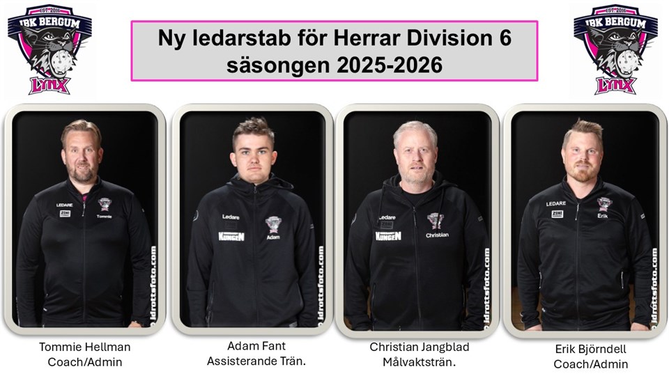 Coach och Admin kommer vara Tommie Hellman och Erik Björndell. Adam fant kommer att kliva in som assisterande och kommer bidra med massa innebandykunskap till laget. Christain Jangblad följer också med från HJ som assisterande tränare med fokus på målvakterna. Vi ser fram emot att följa er under nästa säsong och se hur ni kan vända trenden för det här laget till något väldigt positivt. Stort tack för att ni tar er an uppgiften.
